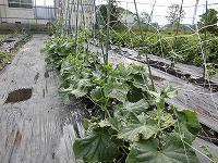 〇ズッキーニ(左)にキュウリ(右)です。キュウリは、収穫が始まっています。