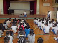 たくさんのお話を、「エプロンシアター」、「パネルシアター」、「大型絵本」などで話して下さり、子ども達は耳だけではなく視覚でも楽しむことができました。どの子も真剣なまなざしで集中してお話を聞き、本の世界に浸っていました。教室で感想を聞くと、とても楽しくて、これからは自分でも本を読んでみたいという子がたくさんいました。