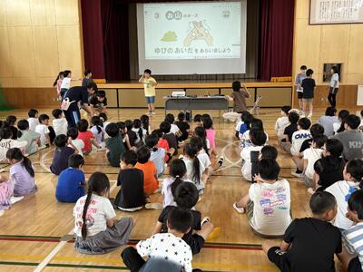 本校の特色である【あしのほタイム】を利用して保健委員会による手洗い集会を開きました。手洗いのこつとして6つのポーズを教えていただきました。①お願いのポーズ、②亀のポーズ、③山のポーズ、④オオカミのポーズ、⑤バイクのポーズ、⑥つかまえたのポーズです。