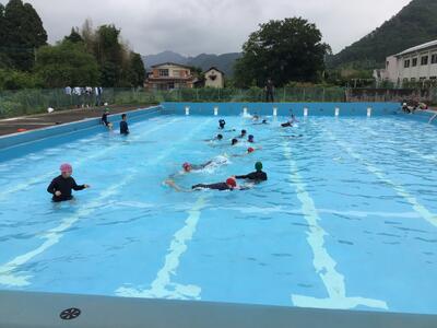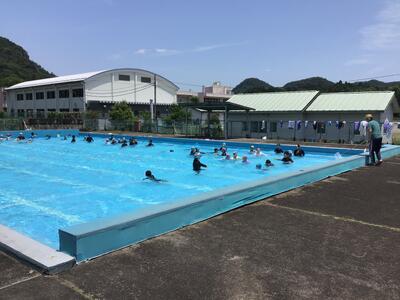 暑いですね。連日35℃を記録する猛暑ですね。体に応えますから激暑かもしれません。そんな中、西小のプールが始まりました。天気晴れ、ほぼ無風、気温27℃、水温27℃、絶好のプール日和でした。みんな気持ちよさそうですね。