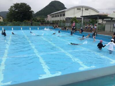 梅雨の中休み、絶好のプール日和でした。昨日は5、6年生、今日は1~4年生がプールを楽しみました。