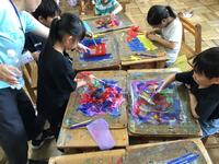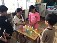 今日の図工は絵の具を使ってカラフルな色水を作りました。絵の具の量で濃さが変わったり、色を混ぜたりとできた色水に驚いていました。友達と話したり、協力したり、楽しい活動になりました。