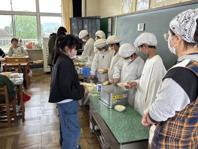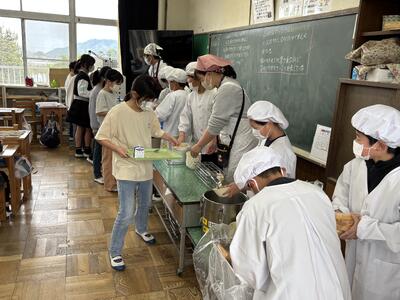 昨日から西中2年生のマイ・チャレンジが始まり、子どもたちと一緒に給食に取り組んでいます。わずか3日間ですが中学生から多くのことを学んでほしいです。