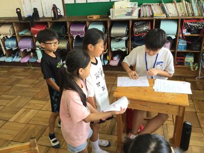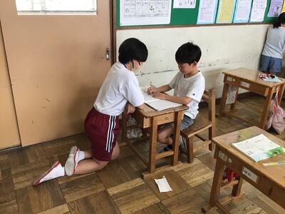 7/2(水)~7/4(金)の3日間ですが西中生の2年生よるマイ・チャレンジ(働く体験学習)がありました。6年生にとってみれば来年は西中の先輩になる3名が来ました。わすか3日間でしたが、3人とも担任の業務支援や子どもサポートなど一生懸命取り組んでくれました。子どもたちもとてもなついていました。