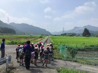 宿泊学習の初めのプログラムは、板荷にある久保田堀の見学です。地域を豊かにするために黒川からどのようにして水を取り入れ、田を増やしていったのかを、現地の見学を通して学びます。子どもたちは暑い中熱心に見学していました。