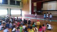 縦割りのなかよし班毎に整列し開会の後、児童代表あいさつ、校長先生から県民の日にちなんだお話があり、係が準備してきたゲームが始まりました。