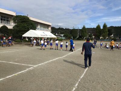最後は、選抜リレーの練習です。代表児童の素晴らしい走りに、全校児童が声援をおくりました。(マスクをつけて、距離を取りながらです…)