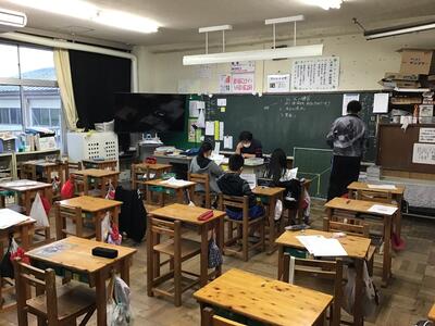 久しぶりの授業で、児童はとても楽しみにしていました。お手本を中心に、丁寧に文字を書いていました。