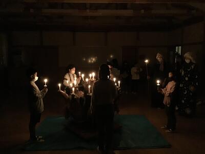 雨のため野外でのキャンプファイヤーはできませんでしたが、室内で「キャンドルファイヤー」を行いました。