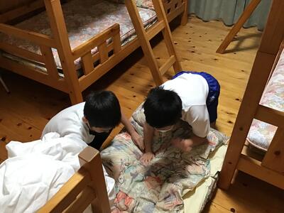 朝起きてすぐに、使った布団の整理をしました。同じ部屋の人と協力したので、素早く終わりました。この後は、朝食の予定です。