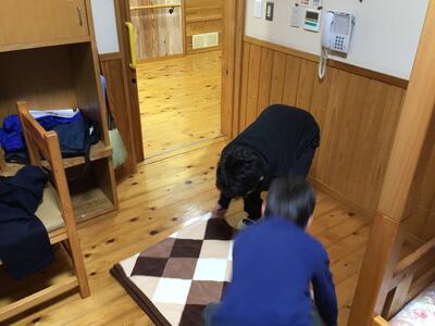 布団の整理が終わったら、部屋の掃除です。来た時よりも綺麗になるように、一人一人、真剣に清掃しています。
