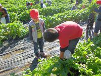 1年生たちは、今年度、ずっと6年生と一緒に農園活動を行い、大根の種も一緒に蒔いたので、一緒に収穫できるのが大変嬉しかったようです。1年生はペアになったお兄さんやお姉さんに、どの大根が良いか教えてもらいながら大根を選びました。