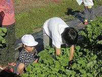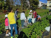 1年生一人では簡単には抜けないくらいに深く根を張った「青首大根」です。大きくて太い大根を6年生と一緒に収穫して、ニコニコしながら歓声を上げている1年生がたくさんいました。6年生は、さすがお兄さん、お姉さんという感じで、まず1年生に大根を穫ってもらってから、その後自分たちの大根を収穫しました。