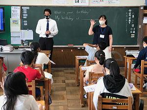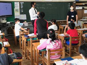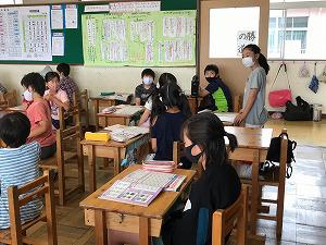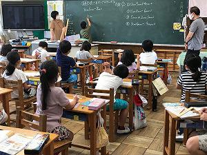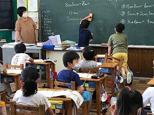 2組では、1学期の内容を復習していました。教頭先生も支援にあたっていました。