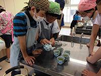 5年生の家庭科の授業で、お茶の入れ方を勉強しました。お茶を入れるとなんだかほんわかした気分になります。先生の説明を聞きながら、グループで丁寧に作業をしました。
