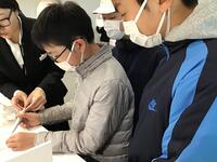 6年生のプログラミングの学習の様子です。グループに分かれて自分たちで考えてプラグラムを組み、スイッチを点灯させたり、色を付けたり、発電機を使いプロペラを回したりしていました。