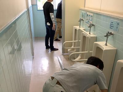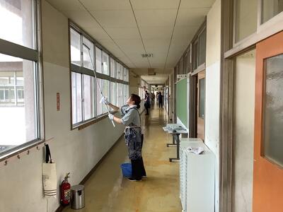 懇談期間中は昼休みの時間を利用して、帰りの会と自教室の清掃を行います。今日は6年生が昇降口やトイレ、階段、廊下などの清掃をしていました。