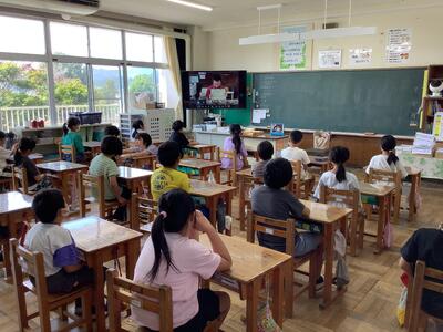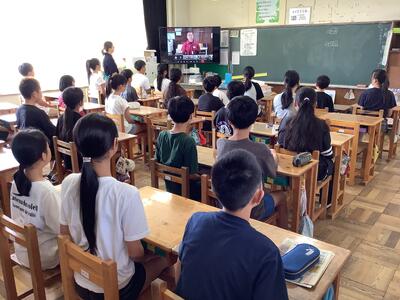 校長室と各教室をリモートでつなぎ、夏休みに向けての全校集会を行いました。校長、児童指導主任、学習指導主任それぞれからお話をいただきました。リモートによる集会でしたが、画面越しに姿勢良く聞いている姿を見てうれしくなりました。明日からの夏休みを健康に安全で安心な生活をお過ごしください。
