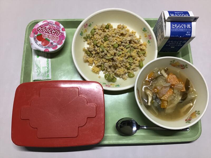 (4年生)いちごゼリーとさんしょくどんがおいしかったです。完食しておかわりしました。
