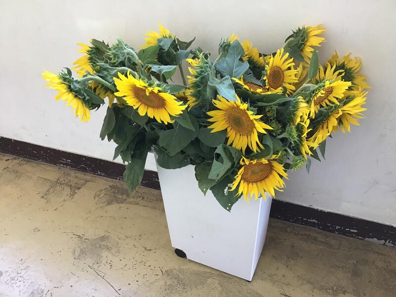 地域の方より、遅咲きのひまわりをいただきました。背丈も大きくなくて咲いている時期も長めのひまわりのようです。校内を綺麗に彩ってくれそうです。