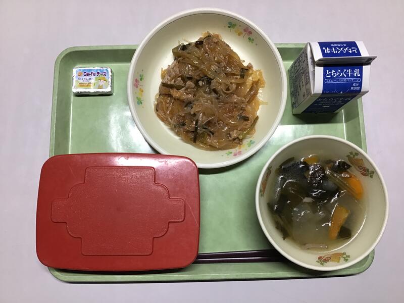 セルフぶたキムチどん(ごはん) 牛乳 ぶたキムチどんのぐ とうがんのスープ チーズ