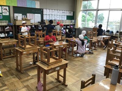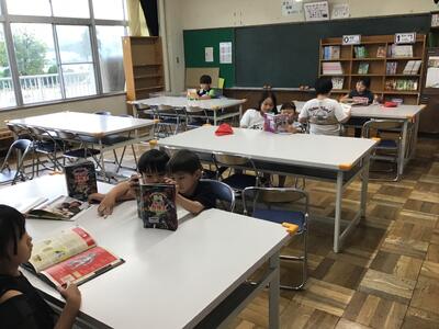 今日は台風が近づいてくる予報があり、大雨の恐れがありましたのでとても心配しましたが、思ったよりも雨量が少なくてほっとしました。雨天のため外遊びができず室内で過ごした子どもたちでしたが、昼休みには委員会の活動をしたり、教室で自作のオモチャのでき具合を確認したり、自分のできることに取り組む姿が見られました。また、図書室を自主的に利用する子どもたちもいて、読書への興味があることに感心しました。気温が落ち着けば、読書の秋が来ます。自分の興味のある本をたくさん読んで欲しいと思います。