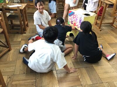 ●4年生とは好きなアニメとかの話で仲良くなれました。また、ドッジビーが上手でびっくりした。人数は西小よりも少ないけれども、友達になりやすかった。