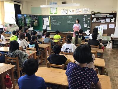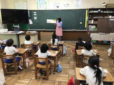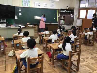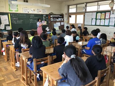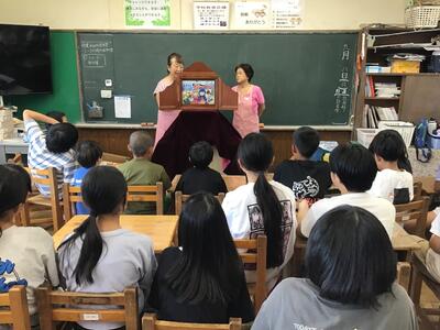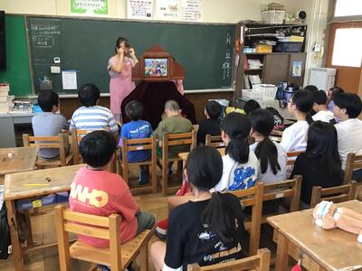 今日の業間を利用して、1、4、5年生教室でお話し会がありました。この機会を楽しみにしている子どもたちが多いようで、お話をとてもよく聞いていました。