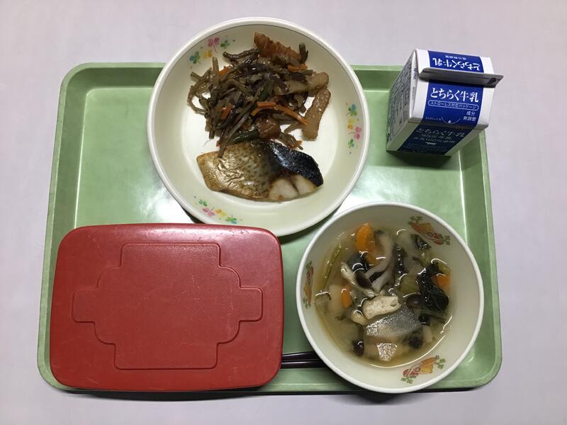 おさかなランチ ごはん 牛乳 さばのしおやき ごもくきんぴら いなかじる