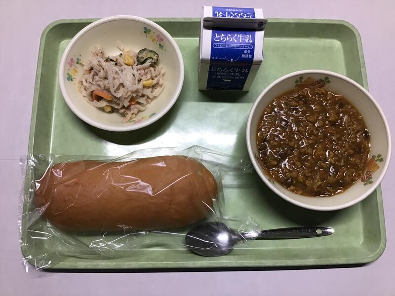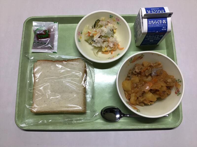 ぼうさいきゅうしょく ぎゅうにゅうパン 牛乳 まめカレー きりぼしだいこんのサラダ