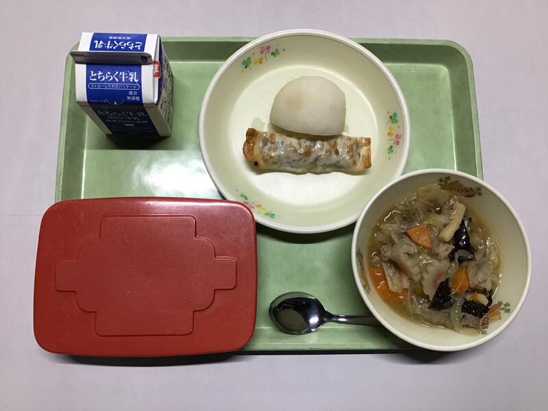 (4年生)ぎょうざロールとなしがおいしかったです。