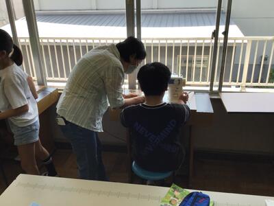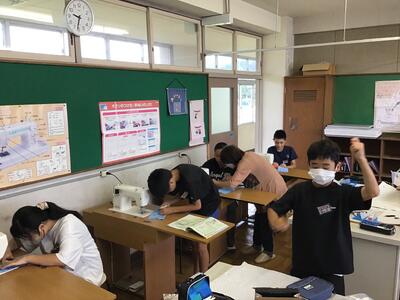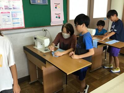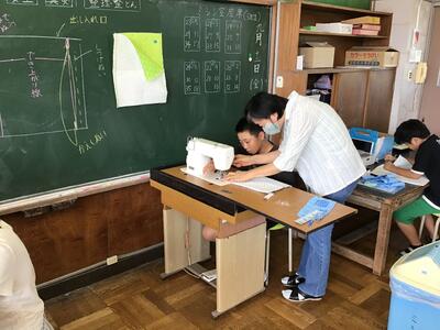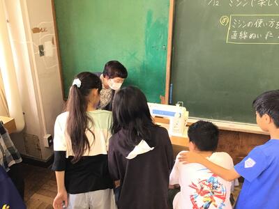 5年生と6年生の家庭科の授業でミシンの実習がありました。3名のボランティアの方々にご指導をいただきました。話を素直によく聞いて技も上達しました。
