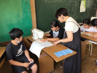 本日もボランティアの方にお越しいただき、ミシンを指導していただきました。今日の授業では子どもたち同士でも教え合う姿があり、今までのご指導の賜物と感じました。