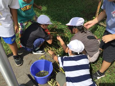 5月からお世話になって収穫していた夏野菜ですが、ついに終末を迎えました。収穫に感謝しながら、子どもたちの手でお片づけをしました。