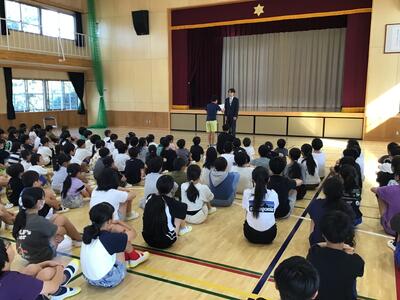 44日間の夏休みを過ごしたみなさんの元気な姿を見ることができうれしく思います。まだまだ暑い日が続きそうですが、この後も元気に過ごしてほしいと思います。