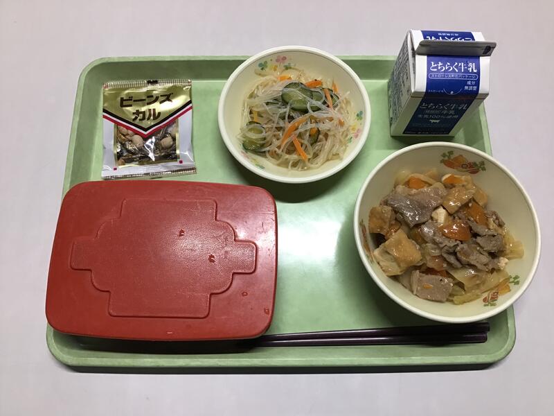 ごはん 牛乳 ジャージャーどうふ ちゅうかサラダ ビーンズカル