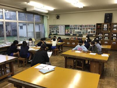 5日(金)には、美術館の相澤学芸員にお越しいただき、3年生から6年生を対象に鑑賞授業を行っていただきました。子供たちは、作品1点1点をよくみて、その中からお気に入りの作品を見つけて感想を書いていました。また、学芸員さんから「作品の『におい』や『音』『味』を感じてみましょう」といわれ、柔軟に、豊かに感性をはたらかせながら作品から様々なことを感じ取っていました。「時間が足りない」という声が聞こえてくるほどでした。