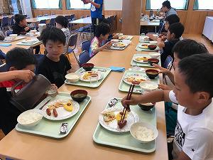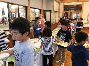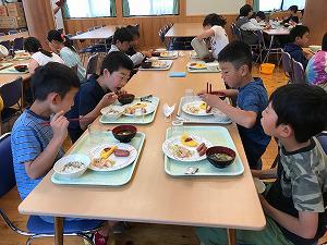 おはようございます。しっかりと寝ることができたようで、元気よい姿です。午前7時30分から朝食でした。美味しそうに食べていました。最終日の活動が楽しみです。予定よりも素早く行動ができていて、大変立派です。