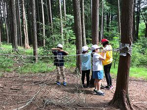 昨日作った基地で楽しみました。寝転がって空を眺めたり、揺らしたりしながら楽しみました。その後、後片付けです。グループで協力して手際よく行うことができました。協力が身に付いてきたようです。すごいね。