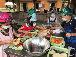 いよいよピザづくりです。基地後片付けと同じように協力です。