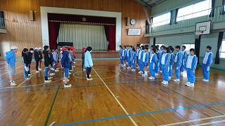 本日、2回目の持久走練習を行いました。本校は、6・1年生、5・2年生、4・3年生のペア学年で準備運動を行います。上級生が下級生の面倒を見て、みんなで元気いっぱいに走ります。寒さに負けず、みんなで頑張りましょう。