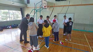 今回は6つのグループに分かれて活動しました。英語のゲームをしたり、社会科の劇を見たり、国旗当てクイズをしたりして、中学校の学習にほんのちょっぴり触れることができました。中学生が工夫した活動を考えてくれたので、6年生もとても楽しそうにしていました。