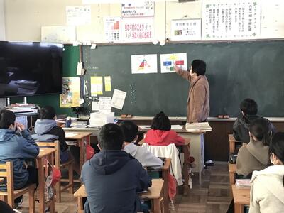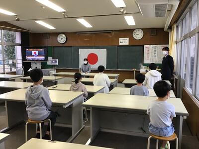 今日(1月25日)は、4年生の外国語活動の研究授業を実施しました。今日も、感染症対策のため授業の様子をリモート配信して行いました。