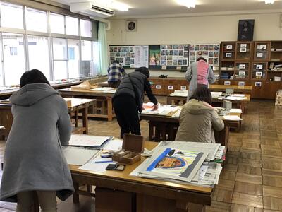 3学期も、作品整理ボランティアの皆さまが、子供たちが図工の時間や冬休み中に作成した絵画や版画などの作品整理を行ってくださいます。
