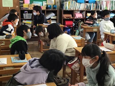 特に、グループでの話し合いでは、それぞれが自分の考えを述べたり、友達の意見に対し質問したりするなど、どのグループも積極的に意見を交流していました。6年間、共に学校生活を過ごした30名の子供たちの絆の深さも感じられる授業でした。
