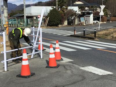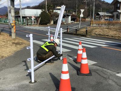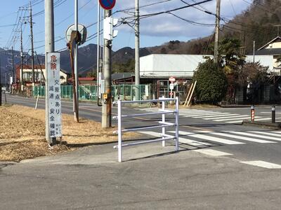 西小学校前には手押式の信号機が設置されており、登下校時には多くの児童がその場を横断しています。信号機がある道路は緩いカーブになっている上に交通量も多いため、交通事故等が心配される大変危険な状況でした。