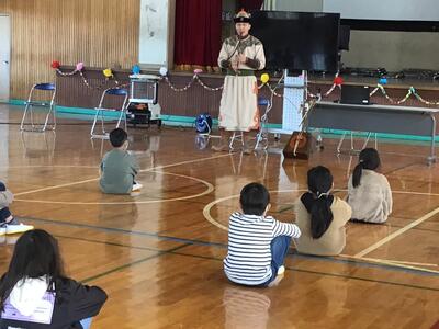 4月18日(月)、1年生を対象に第1回目のお話会がありました。1年生にとっては初めてのお話会でしたが、KLVの方のエプロンシアターや絵本の読み聞かせを身を乗り出すようにして聞き入っていました。