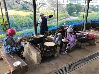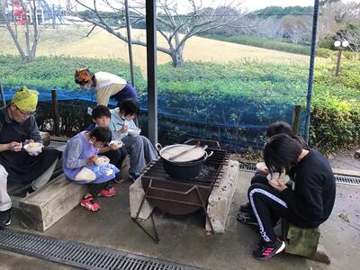 大鍋力うどんができ上がりました。手際が良かったので、10時30分くらいにはみんなで食べ始まりました。片付けも綺麗にできたと、施設の先生から褒めていただきました。