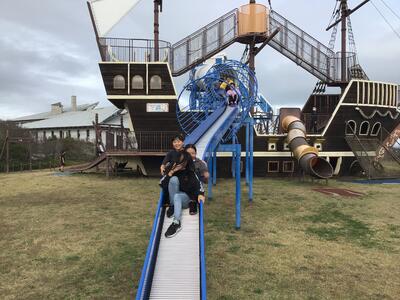 アップするのを忘れていました。今日は、大鍋力うどんを食べた後、アスレチック広場で遊びました。大きな船の形をした遊具で、みんなで楽しく遊びました。