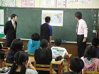 特に、本校ALTと6年担任が英語でヒントを出し、聞き取った内容をもとにして国旗を選び国名を書く 「国当てゲーム」 では、6年生たちはグループで協力して和やかに楽しそうに答えを導き出していました。